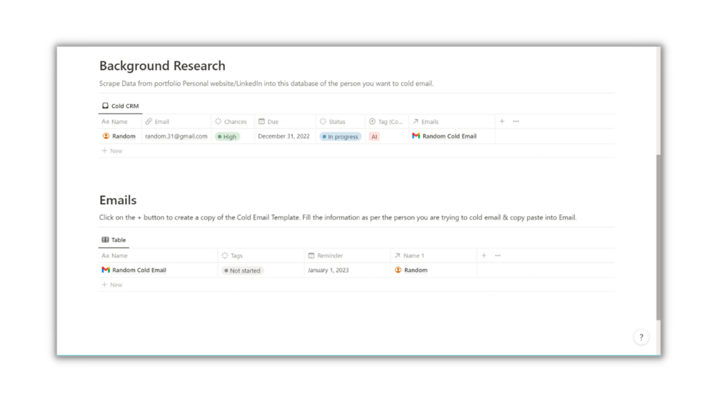 With our template, you'll have access to a database to store all of the information about the people you are reaching out to, including their names, company, and contact information. Plus, we've included a prebuilt cold email template that has been proven to be effective. Simply fill in the blanks with your own personalized information and your email is ready.