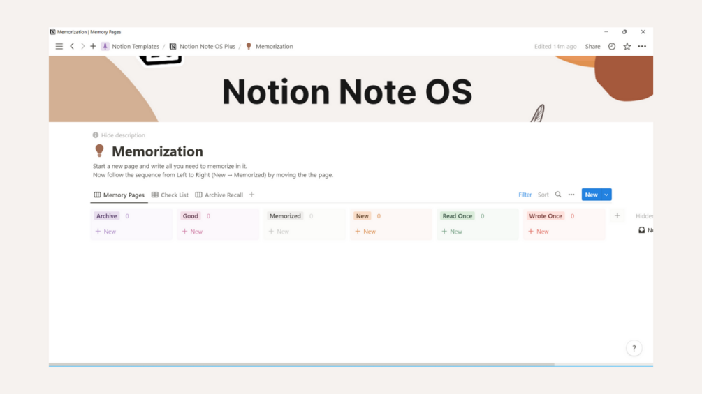 - Use Memory Pages to Categorize the notes you wrote into Memorized, Read, Wrote Once, etc